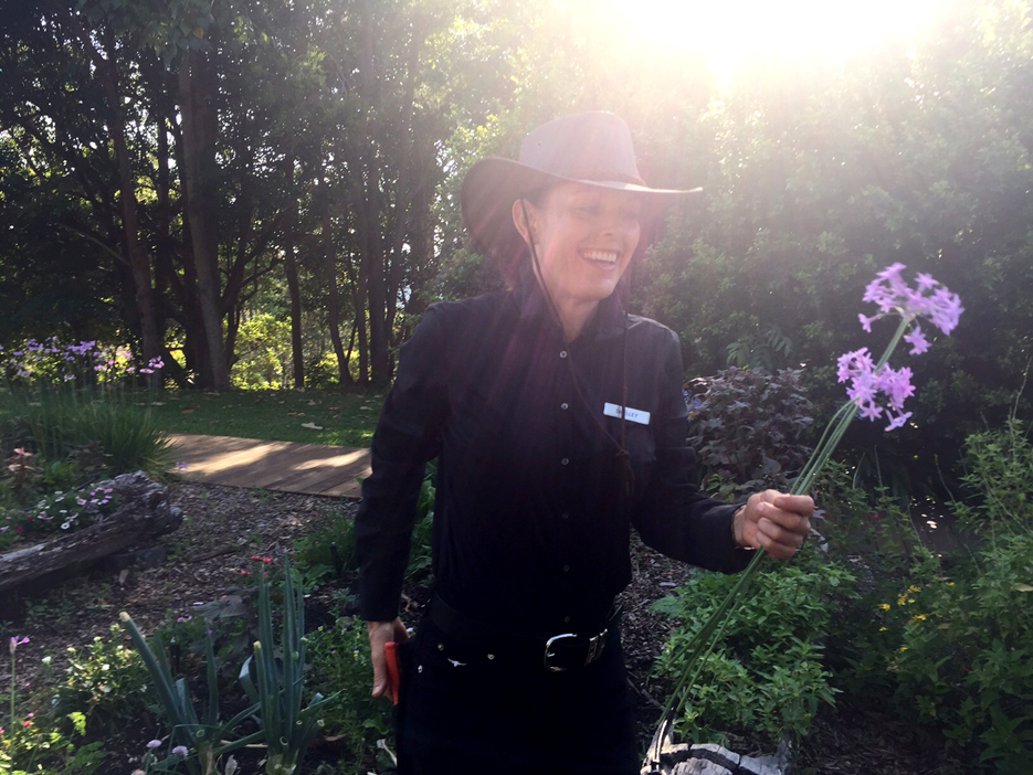 The food was divinely prepared with a lot of the native herbs and edible flowers coming from the local organic garden lovingly cared for by Shelley and her team. Shelley runs tours through the garden daily and you might even get to meet the chinese silky bantams I lovingly renamed disco chicks. They are gorgeous with amazing white fluffy coats and help keep the bugs at bay.