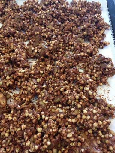 Buckwheat is very alkalising, high in protein and complex carbs so will be great for refuelling. The cacao used in the recipe is super high in anti-oxidants and I’ve laced the cereal with superfoods such as maca, bee pollen, camu camu and goji berries, all great for energy, stress support, stamina, endurance.