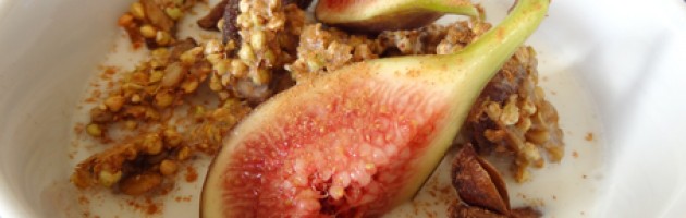 Dehydrate at 105°F for 10-14 hours. Remove from sheets and break up into chunks and store in air tight container in the pantry. Serve with almond milk (see my video on how easy it is to make almond milk), freshly sliced figs and a dusting of cinnamon.